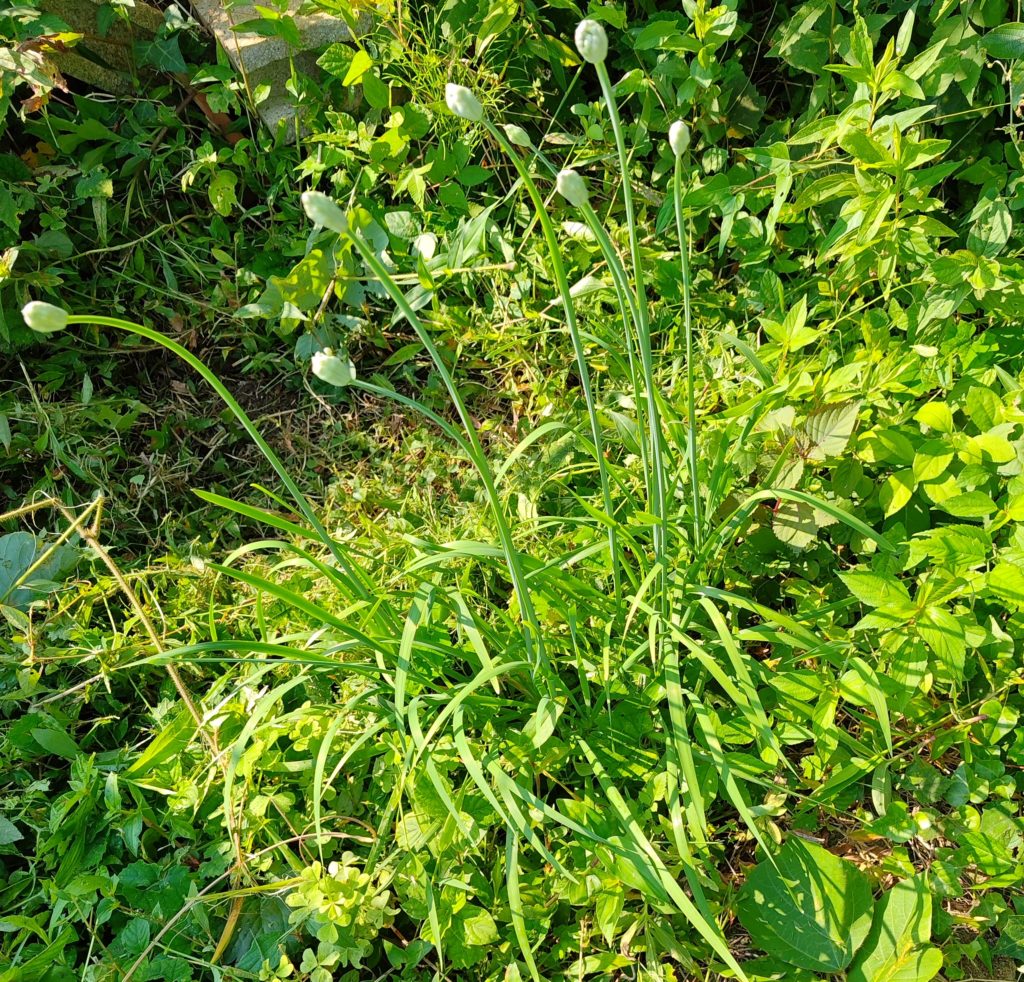 かすみがうら、入ってすぐ右手にニラが生えています。草刈り中に何株か確認しました。よろしければお食事に添えてください。